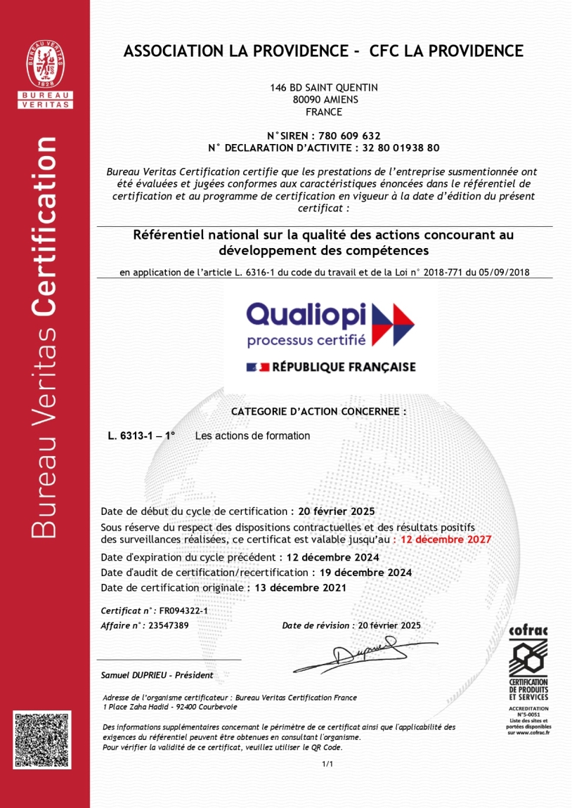 - Le Centre de Formation Continue La Providence, créé en 2018, propose un large panel de formations dans différents domaines :